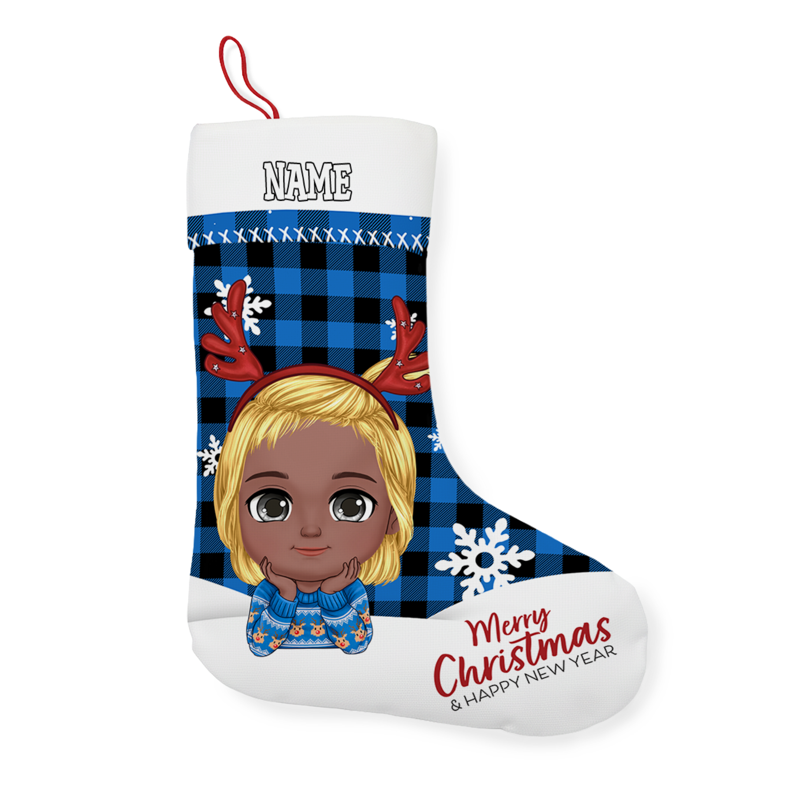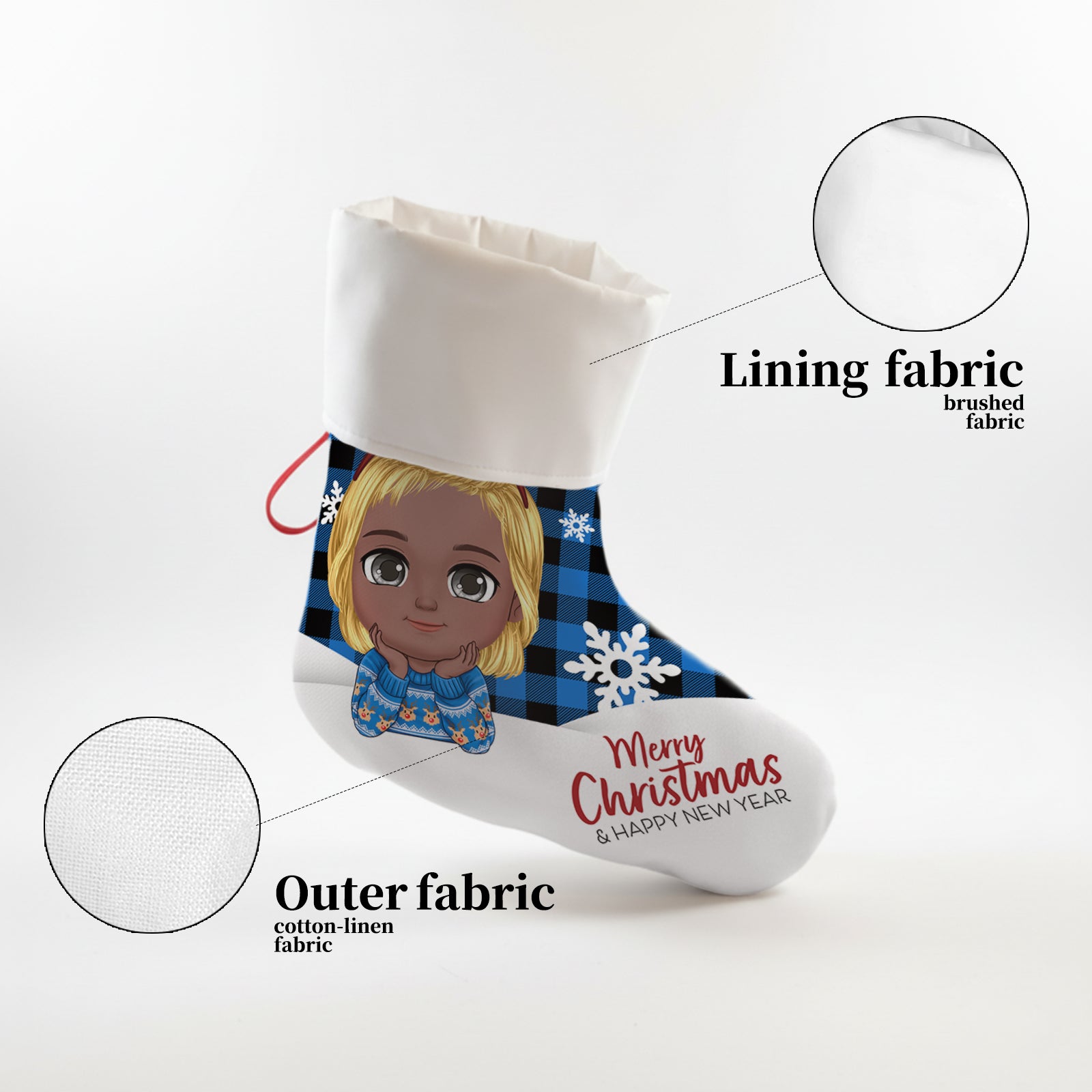 🎄 Create Your Own Personalized Christmas Stocking! Make this Christmas extra special with our custom portrait Christmas stocking — featuring adorable Child, Woman, and Man character options. Each stocking is uniquely printed with your personalized illustration, outfit, and name!